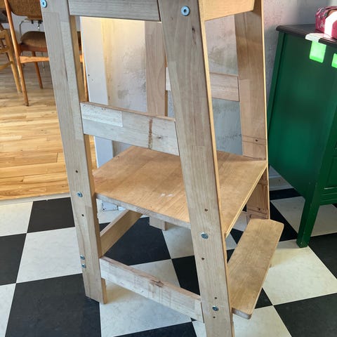 Inddragelse i øjenhøjde: Perfekt til at lade den lille hjælpe med madlavningen eller bageprojekterne uden at du skal bekymre dig om balancen på en almindelig skammel.