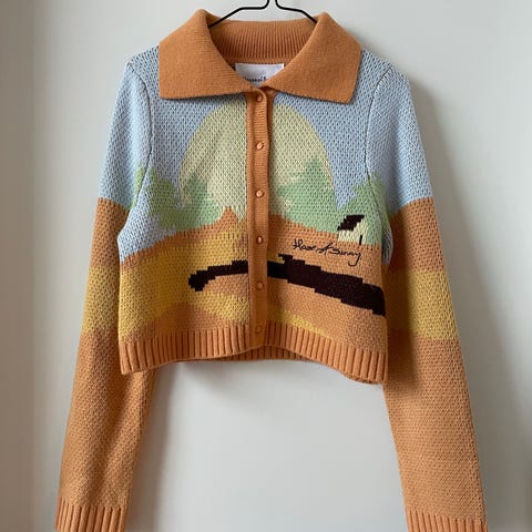 Lyngfarvede eller gammelrosa kort cardigan. Str xs.