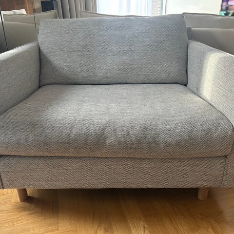 Liberty XL fra ILVA. 3-personer sofa og lænestol. Lænestolens mål H: 82, B: 109, D: 102.