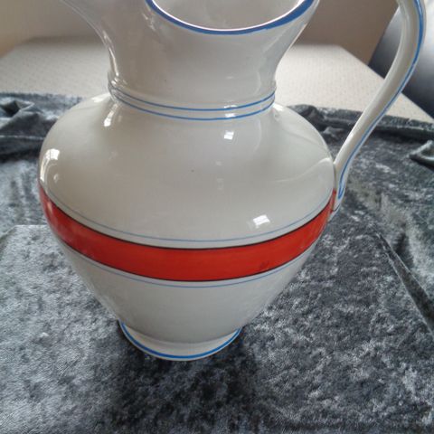 Porcelæn, Sukker og fløde sæt, Villroy & Boch Mettlach, Yndigt ternet sukkerskål med låg og flødekande fra omkring 1940. Højde ca. 8,5 cm. Mønster nr. 8202. France-Saar. Brugsspor med ingen skader. Perfekt til sommer- eller kolonihavehuset