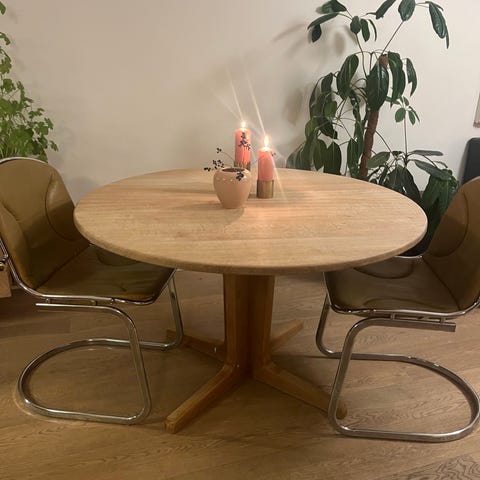 Spisebord rundt, eg