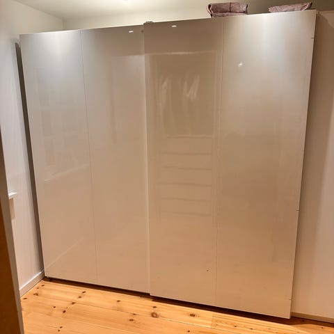 1 sæt skydelåger den ene side har spejl dog er det nederste spejl revnet det har ikke betydning for brug af lågerne.