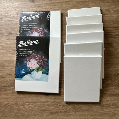 Jeg sælger alle disse lærreder i forskellige størrelser. De er ubrugte. De er fra et dødsbo og er lidt beskidte uden på plastikken nogle af dem, men de er alle stadig pakket ind i plastik.
