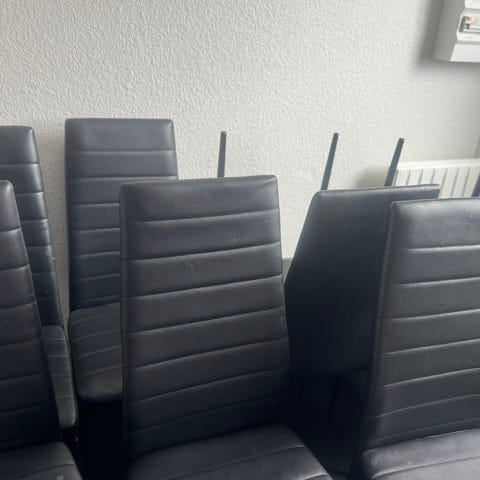 Spisestue stole, 6 stk mørk brun betræk og sorte stålben. sælges samlet. pris er pr. stk.