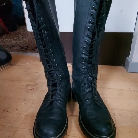 Dr. Martens støvler i størrelse 38, lavet af sort læder. Støvlerne har snørebånd og en slidstærk gummisål. Designet er unisex og egnet til dagligt brug.