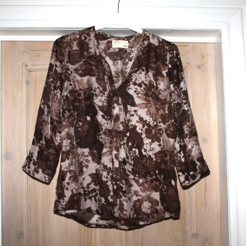 Perlebroderet bluse fra Rützou. Trekvart ærmer. Rosa bomuldstof.
