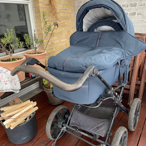 Odder barnevogn i grå farve med rummelig liggedel. Barnevognen har stor kaleche, justerbart håndtag og opbevaringskurv under sædet. Designet til komfort og funktionalitet med robuste hjul, egnet til forskellige terræner. Der medfølger både madrass til lift og barnevogn, myggenet, regnslag, barnevognssele og sol sejl :)