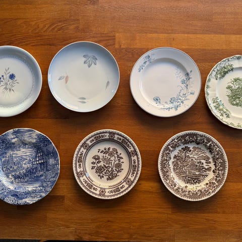 Fine, gamle kage eller frokosttallerkener. Fra Bing & Grøndahl, Villeroy & Boch, Scherzer, Wood & Sons mfl. alle i fin stand.