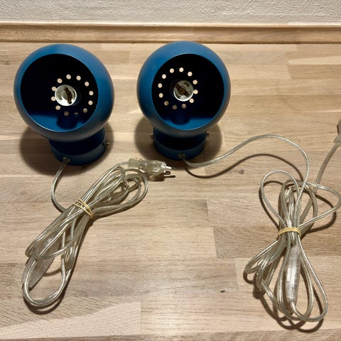 2 petroleumsfarvede Ball magnet kuglelamper. Med 240 cm klar ledning med mellemafbryder og hanstik. Bruger elpære med lille sokkel/E14 - kronepære. Flot stand og kun ubetydelige brugsspor. Med monteringsbøjler. Fuld funktionsdygtige.