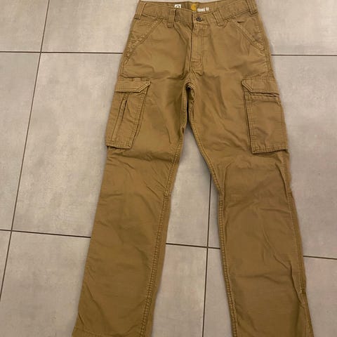 Carhartt sorte bomuldsbukser til mænd i størrelse W31, Bukserne er fremstillet i bomuld og polyester, de har en klassisk pasform.