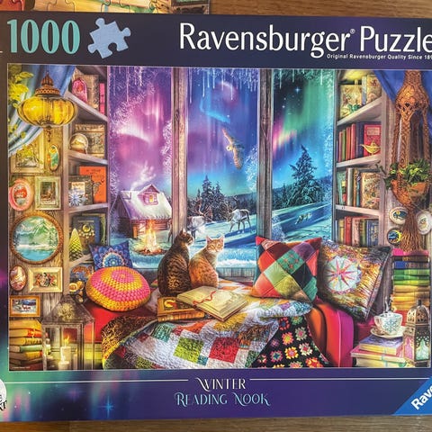 500, 1000 og 1500 brikker. Indeholder forskellige motiver herunder påskehave, hundehvalpe, hytte ved sø, fantastiske landskaber, sne-og julemotiver