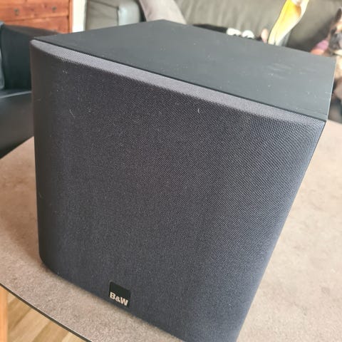 Bowers & Wilkins ASW608 subwoofer i hvid farve. Enhed til lydforstærkning med tilslutninger på bagsiden. Designet til brug i lydsystemer for forbedret basgengivelse. Har og et sæt B&W cm1 højtaler til salg sammen med i en anden annonce