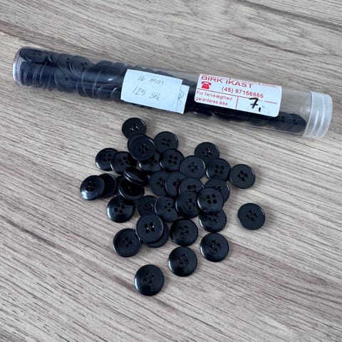 16 mm knapper - 93 stk. Sorte. Sælges, da jeg rydder op i alle mine ting i forbindelse med ombygning.