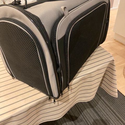 Fin transportkasse som har været brugt til stor kanin. Kan også bruges til kat eller lille hund. Låsen til låget er desværre defekt, men kan sagtens bruges alligevel, derfor den lave pris.