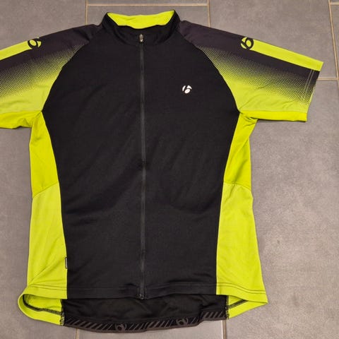 Bontrager cykeltrøje i størrelse Small med farverne rød og grå. Trøjen er designet til cykling og har lynlås foran samt lommer bagpå til opbevaring. Materialet er egnet til sport og udendørs brug.