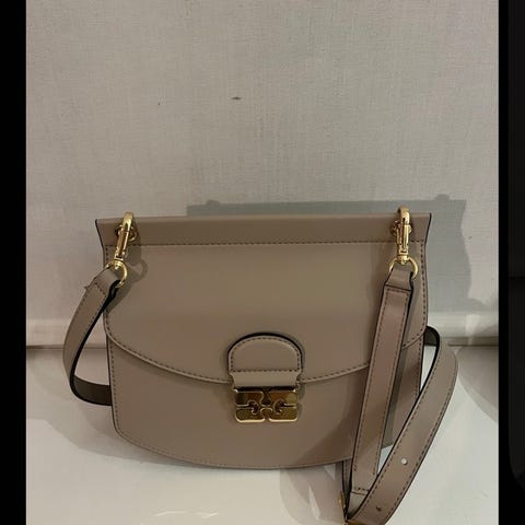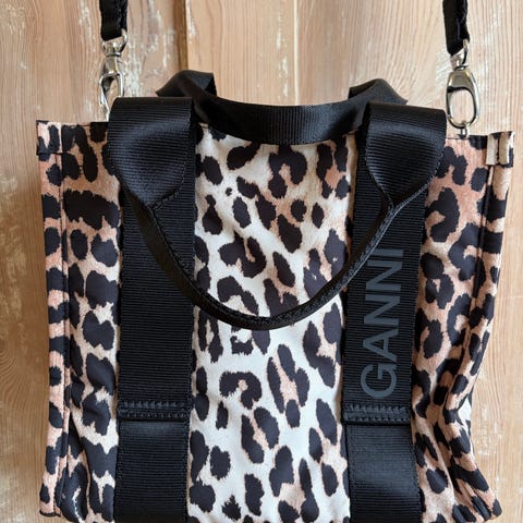 Ganni lædertaske i sort med justerbar skulderrem. Tasken har et enkelt design med syninger i kontrastfarve og et præget Ganni-logo på forsiden. Egnet til opbevaring af mindre personlige ejendele.