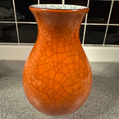 Royal Copenhagen krakeleret vase, orange med guldkant