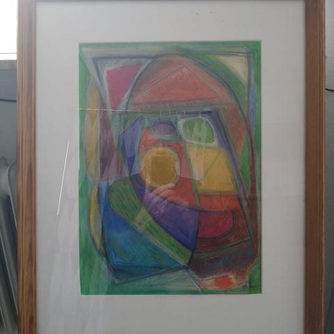 46 x 62 cm, Abstrakt maleri med farverige geometriske former i forskellige nuancer. Maleriet indeholder elementer som trekanter, cirkler og firkanter i en kombination af varme og kolde farver. Kan anvendes som dekorativt kunstværk til vægophæng. Abtraktion der giver ro!