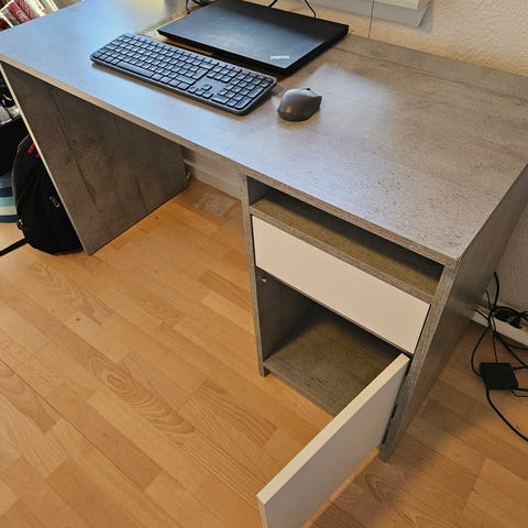 Reol og skrivebord i laminat, lys beton
