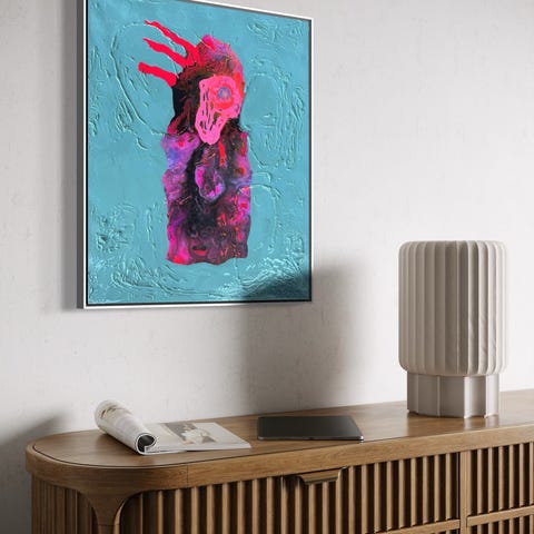 Abstrakt maleri på lærred Maleriet har en firkantet form og viser en kombination af strukturerede og glatte overflader. Velegnet til vægophæng i bolig- eller kontormiljø.