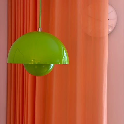 2 stk. &Tradition Verner Panton pendler i flot blank orange. Ca 290 cm orange stofledning på begge.