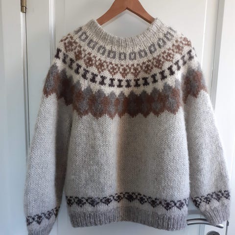 Lundhags sweater/cardigan i uld, gennemgående lynlås og to lommer med lynlås. Varm, god som mellemlag. Det er en XL, men lille i størrelsen.