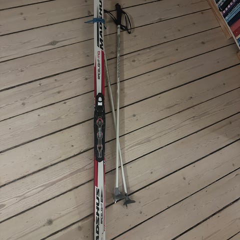 Madshus langrendsski sæt inklusive ski, støvler og stave. Skiene er designet til langrend, og sættet indeholder nødvendigt udstyr til sporten.