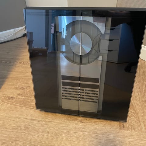 Beosound sælges, låger går lidt trægt, nok fordi det ikke har været brugt længe, kan måske bare smøres, fjernbetjening medfølger