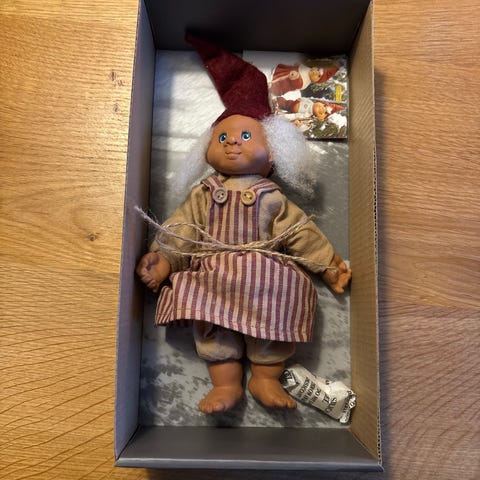 Har skrevet med synlige brugsspor, da jeg synes håret er lidt fluffy og kjolen har en fold i stiffer over maven. Det er også årsag til den lave pris.