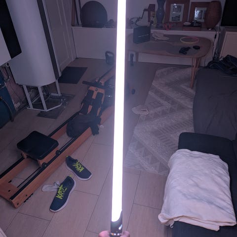 Jeg sælger dette lyssværd. Lyssværdet er i perfekt stand og er desuden i rigtig høj kvalitet. Lyssværdet er et neopixel, hvilket vil sige at det lyser op fra bunden og fortsætter opad. Ligesom i star-wars filmene.