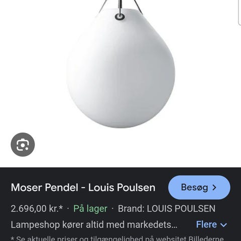 Louise Poulsen pendel designet af Anu Moser med opal glas og grå stofledning ca. 180 cm. Vejl. Ny pris 3.695,-