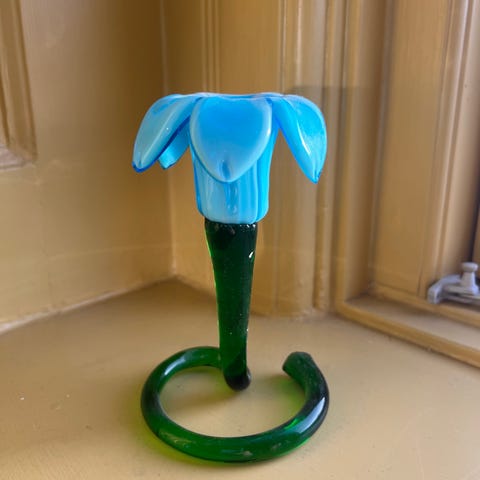 Lille lysestage formet som et hjerte med fine detaljer. I tung glas.