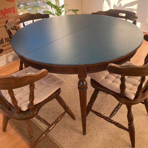 Rundt spisebord i fyrretræ inkl. udtræk på 50 cm