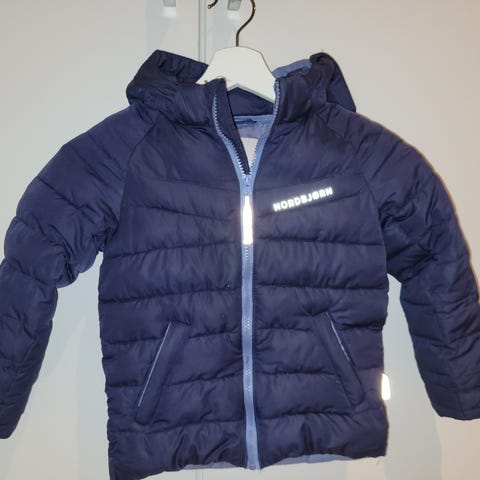 Den er biå, lukkes med lynlås og har aftagelig hætte