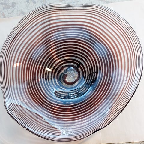 Overfladen har en unik, boblet tekstur. Størrelse er ca. 35 cm i diameter. Det er i god stand med nogle mikroskopiske små ridser, som man skal lede efter.