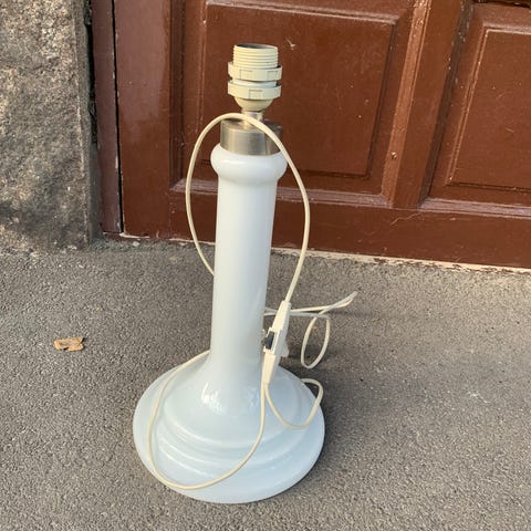 Lampen er i suveræn stand, men den har stået på Bornholm i mange år. Deraf er skærmen mørnet af saltvand fra luften. Vil anbefale at skifte skærmen.