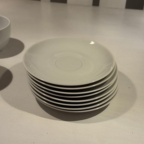 8 stk, Eva Solo kaffekop og underkop i hvid porcelæn