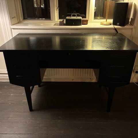 Fint gammelt skrivebord. Indeholder 6 skuffer 2 af dem med lås og nøgle. Opbevarings mulighed på bagsiden (boghylder).