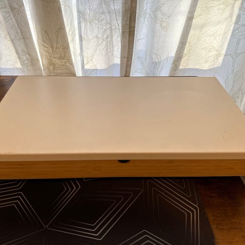 Dette er en IKEA RISSLA skrivebordsorganisator i sort.