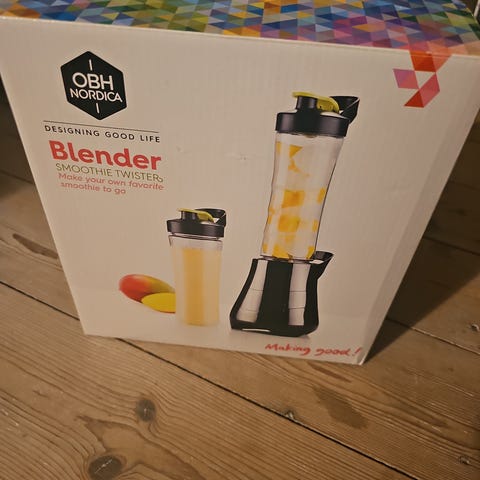 Obh Nordic Blender Twister Blenderen er designet til at lave smoothies og andre drikkevarer direkte i de medfølgende 2 beholder ( drikkedunk) aldrig brugt har stået oppe skabet i'et år