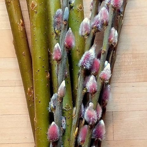Salix daphnoides acutifolia - Kaspisk Dugpil.....kraftigvoksende med smukke mørk grønne/bordeaux grene og flotte hvide gæslinger før udspring. Rigtig fin sort til bierne.