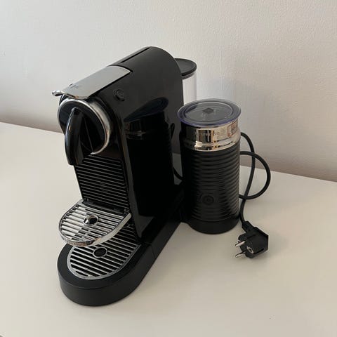 Nespresso kaffemaskine sort med mælkeskummer