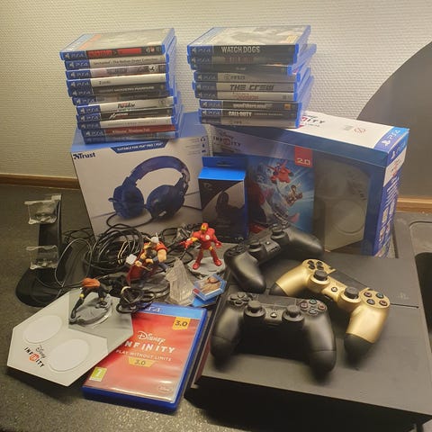 6 Playstation 3er, 23 spil med, 5-6 controller med.