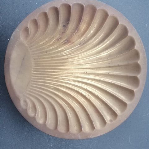 Lille vintage tallerken eller mini fad formet som en muslingeskal. 11 cm i diameter. Kan bruges til lys eller andet.