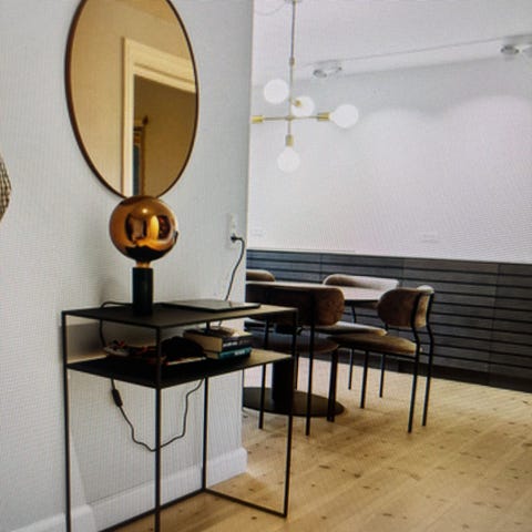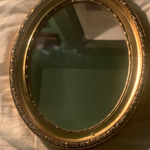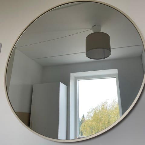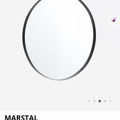 Marstal rundt spejl med stel i stål og spejlglas. Spejlet har en diameter på 70 cm og en dybde på 4 cm. Farven på stellet er guld, og spejlet vejer 5 kg. Spejlet kan afhentes i Brønshøj.
