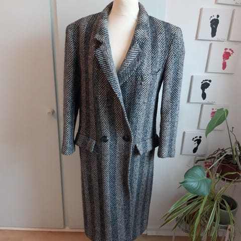Sort Vintage Penny Lane frakke i uld og cashmere. Den er fra mærket Berghaus.