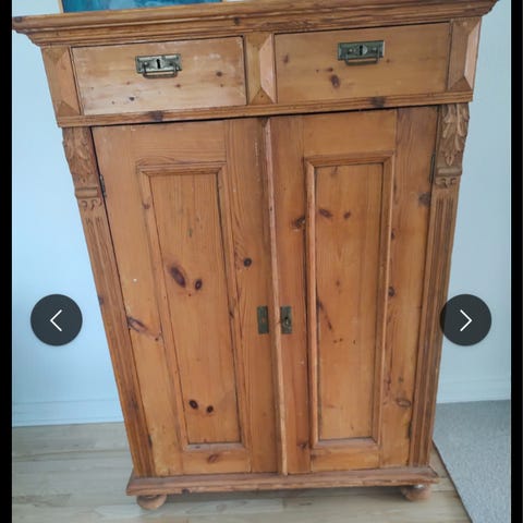 Smukt hvidt retro skab i massivt træ. Har måske lidt et orientalsk udseende og kan rumme rigtig meget.