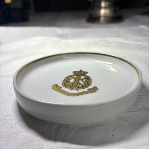 1 stk. hvid askebægre med politiets logo. Pris 100,-kr.