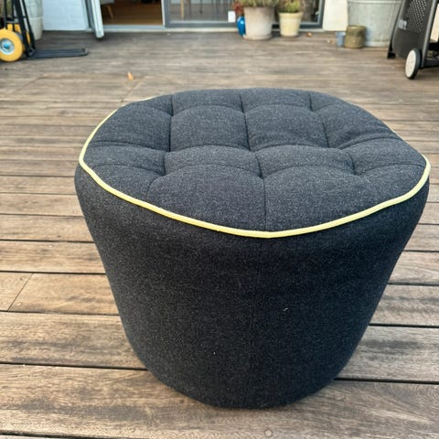 Flot stor puf, sort med sølvtråde, 100 cm brede og 35 cm høj