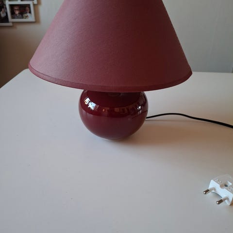 Lille rund bordlampe i keramik, der er ingen skår og revner, er i super fin stand, med afbryder på ledningen.